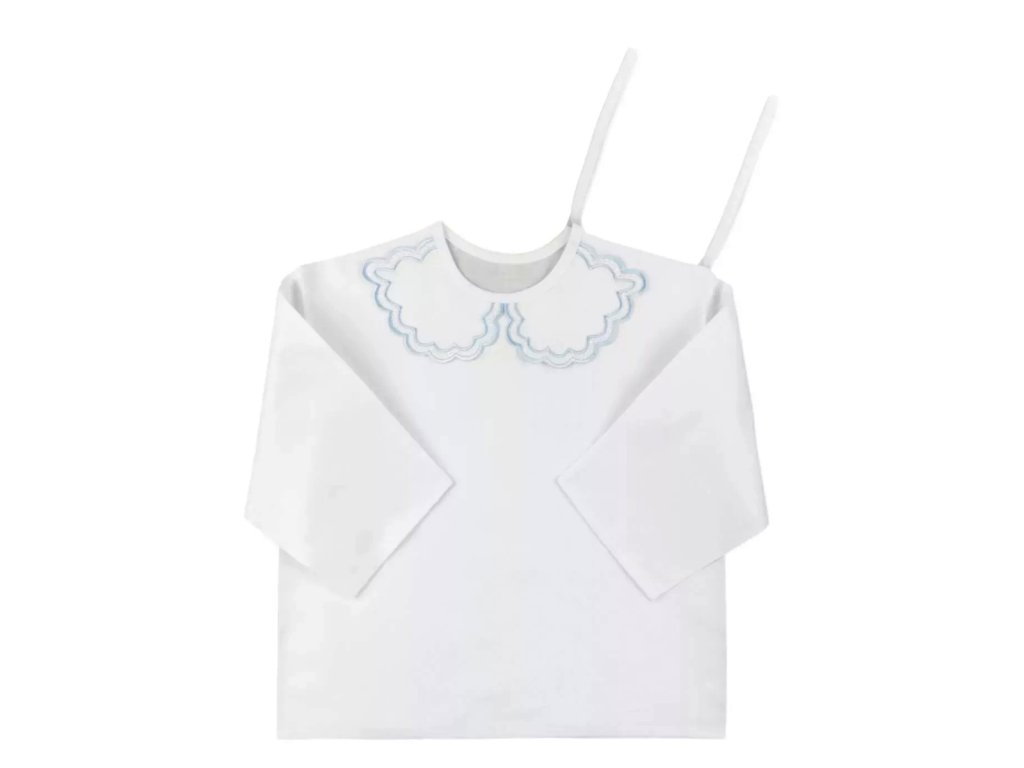 Vyšívaná košieľka je určená na krst. Košieľka je bielej farby, ozdobný limec je vyšitý rôznymi farbami (biela, modrá ružová). V spodnej časti košieľky je vytvorený priestor na vyšitie mena a dátumu.