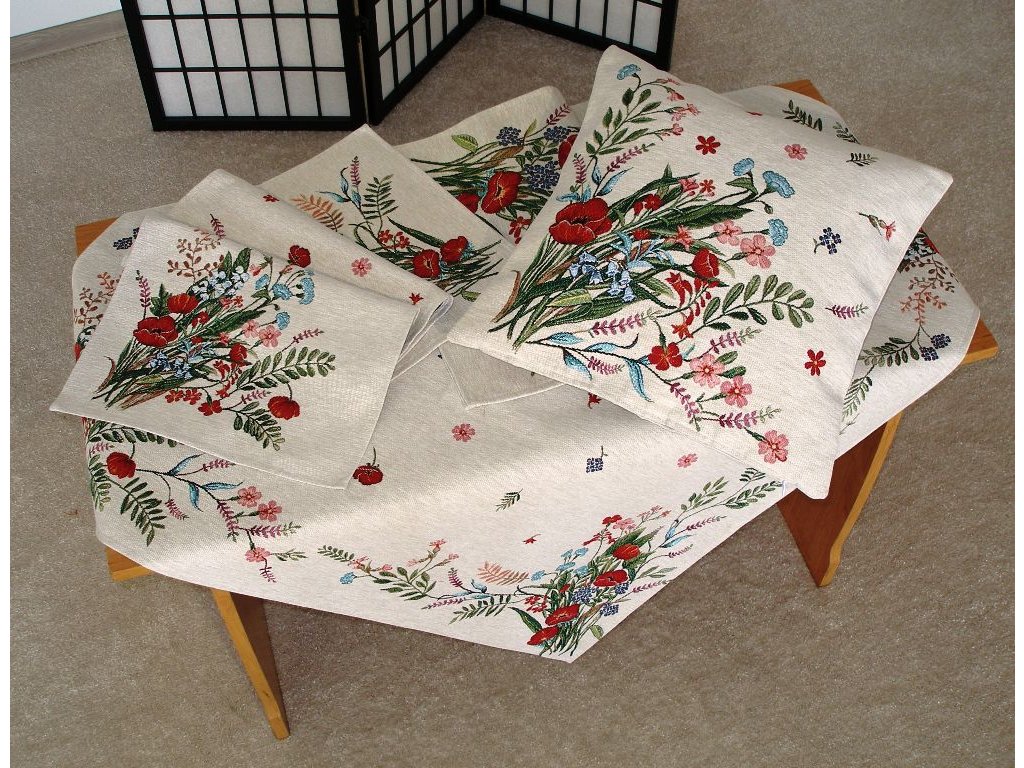 Gobelínové obrusy sú veľmi decentné, vhodné do domácnosti, hotelov, penziónov.