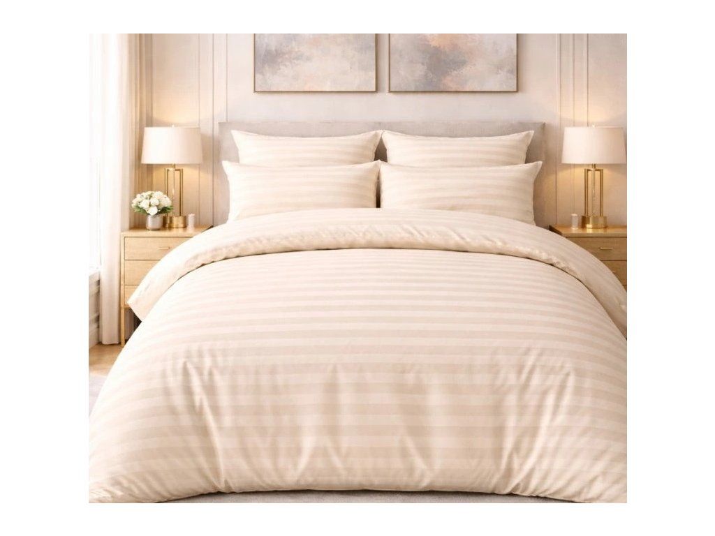 Posteľná súprava Damašok je vyrobená z jemnej, vysoko kvalitnej sanforizovanej česanej bavlnenej damaškovej priadze. Je v prevedení 2 cm prúžok.