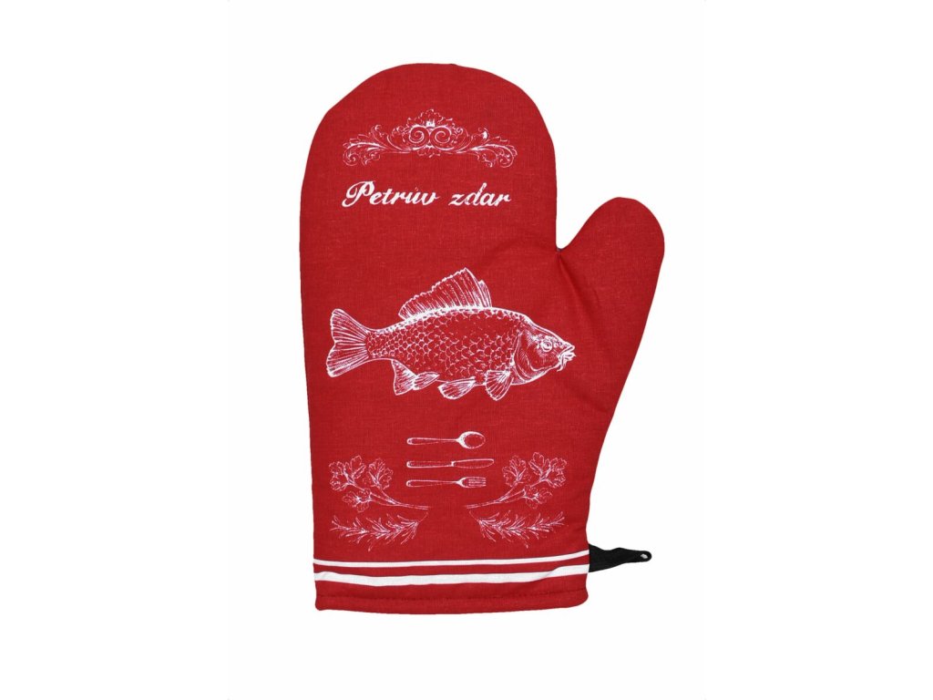 Rukavička kuchynská 92 RYBY červená