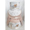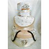 Torta obsahuje: 2 ks osuška Ema 70x140 cm, 3 ks detský podbradník KIKO, 5 ks plienka 70x70 s potlačou + dekorácia a aranžovanie (môžu sa meniť podľa aktuálnej ponuky).