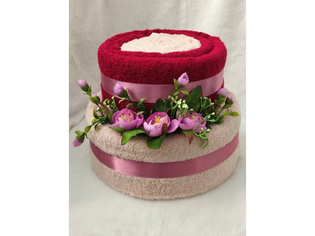 Torta obsahuje: 2 ks uterák Ema 50x100 cm, 2 ks osuška Ema 70x140 cm + dekorácia a aranžovanie.