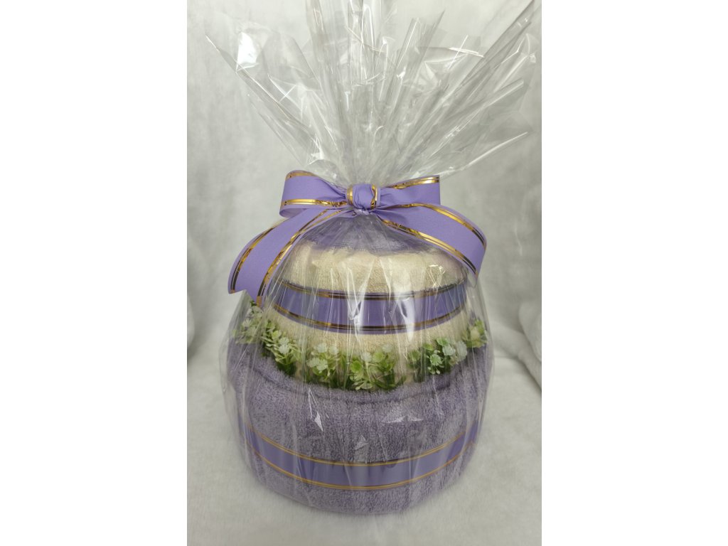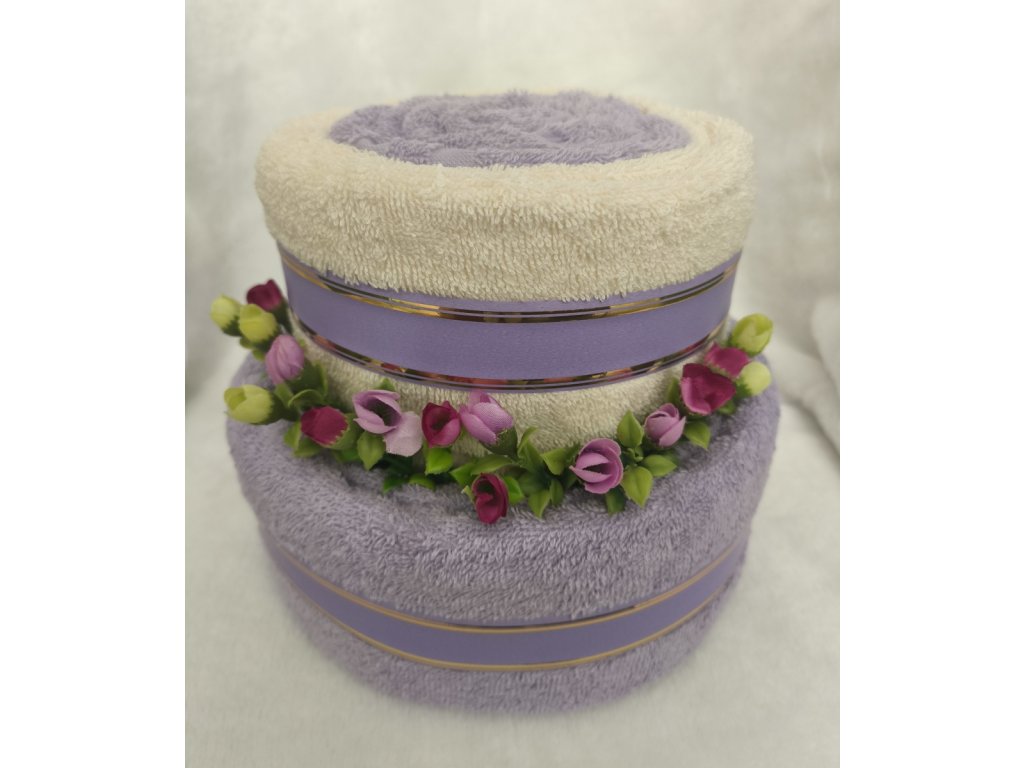 Torta obsahuje: 2 ks uterák Ema 50x100 cm, 2 ks osuška Ema 70x140 cm + dekorácia a aranžovanie.