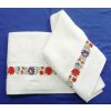 Uterák FOLK je veľmi hebký na dotyk a vyznačuje sa vysokou savosťou. Originálna folklórna výšivka v spodnej časti výrobku dotvára očarujúci vzhľad uteráku i osušky.