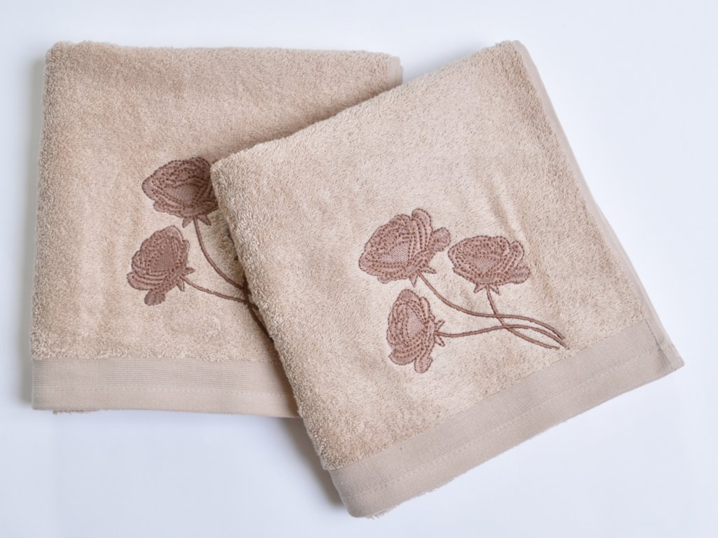 Uterák a osuška TANYA má nadýchaný vzhľad, je veľmi hebký na dotyk a vyznačuje sa vysokou savosťou. Výšivka v dolnej časti výrobku dotvára očarujúci vzhľad uteráku i osušky.