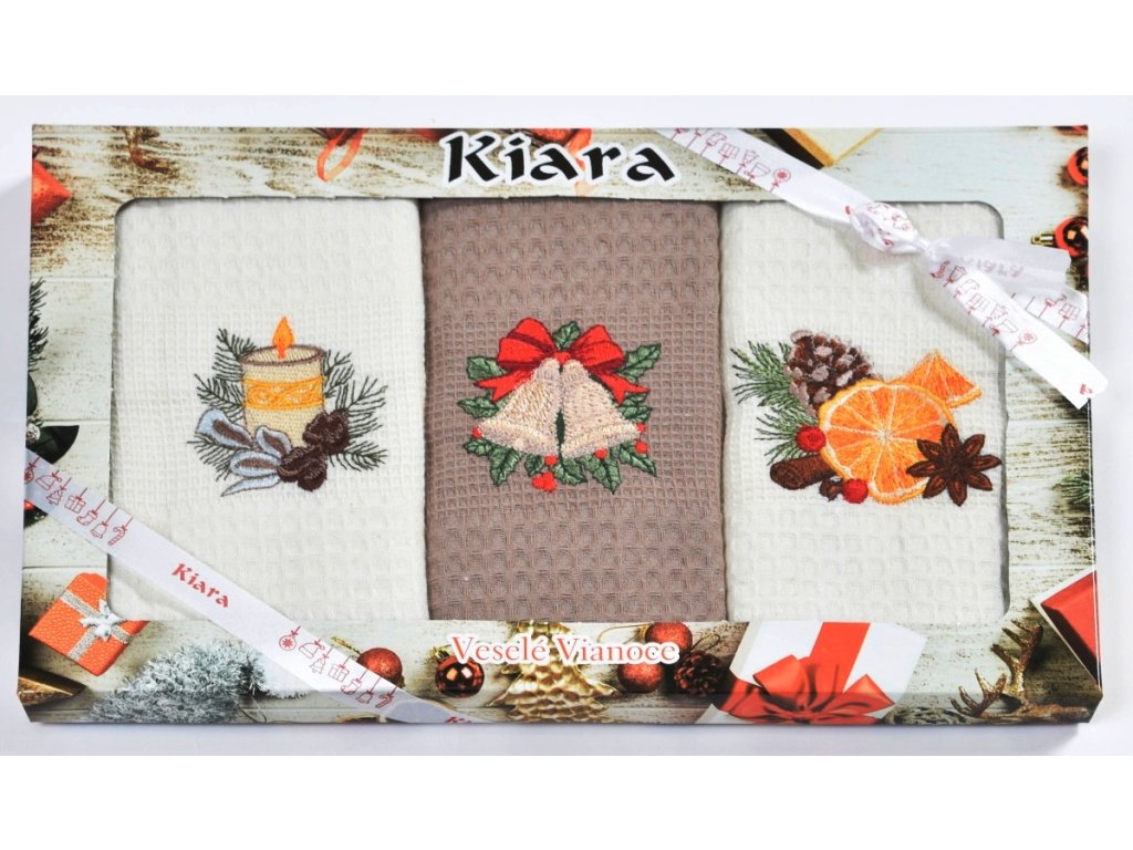 Utierky sú vyrobené z kvalitného bavlneného vaflového materiálu, ktorý má výbornú savosť. Sú vyrobené vo viacerých farebných variáciách a sú doplnené tematickou potlačou . Utierky sú balené v dekoračných kazetách po 3 kusy a sú veľmi vhodné ako darček.