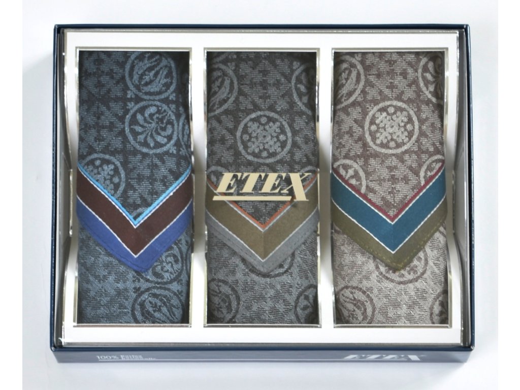Vreckovky pánske so žakárovým sú balené v darčekový kazetách po 3 ks.