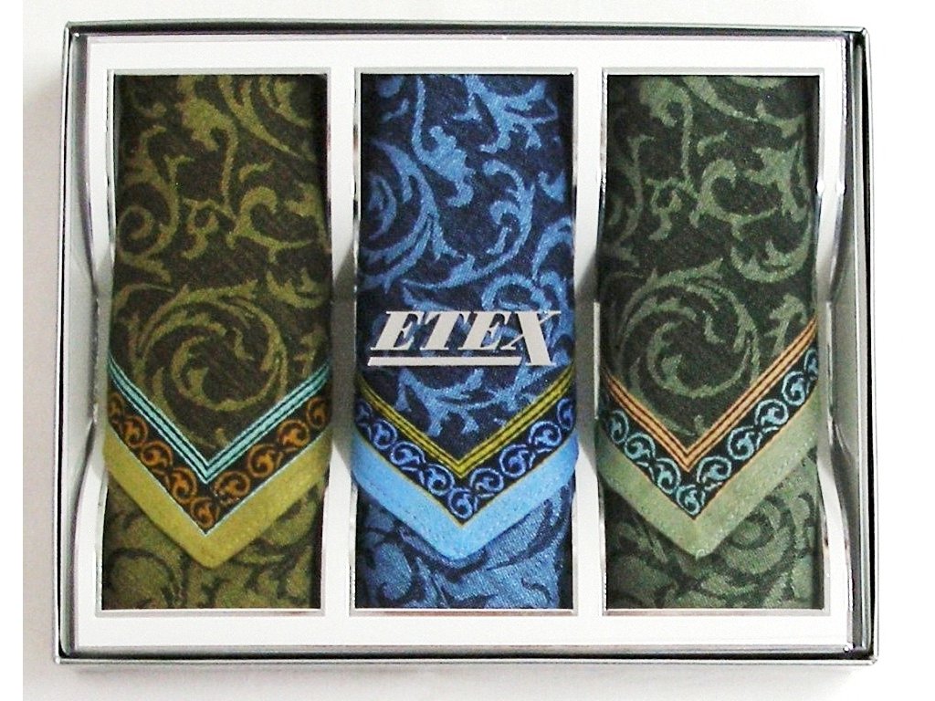 Vreckovky pánske so žakárovým sú balené v darčekový kazetách po 3 ks.
