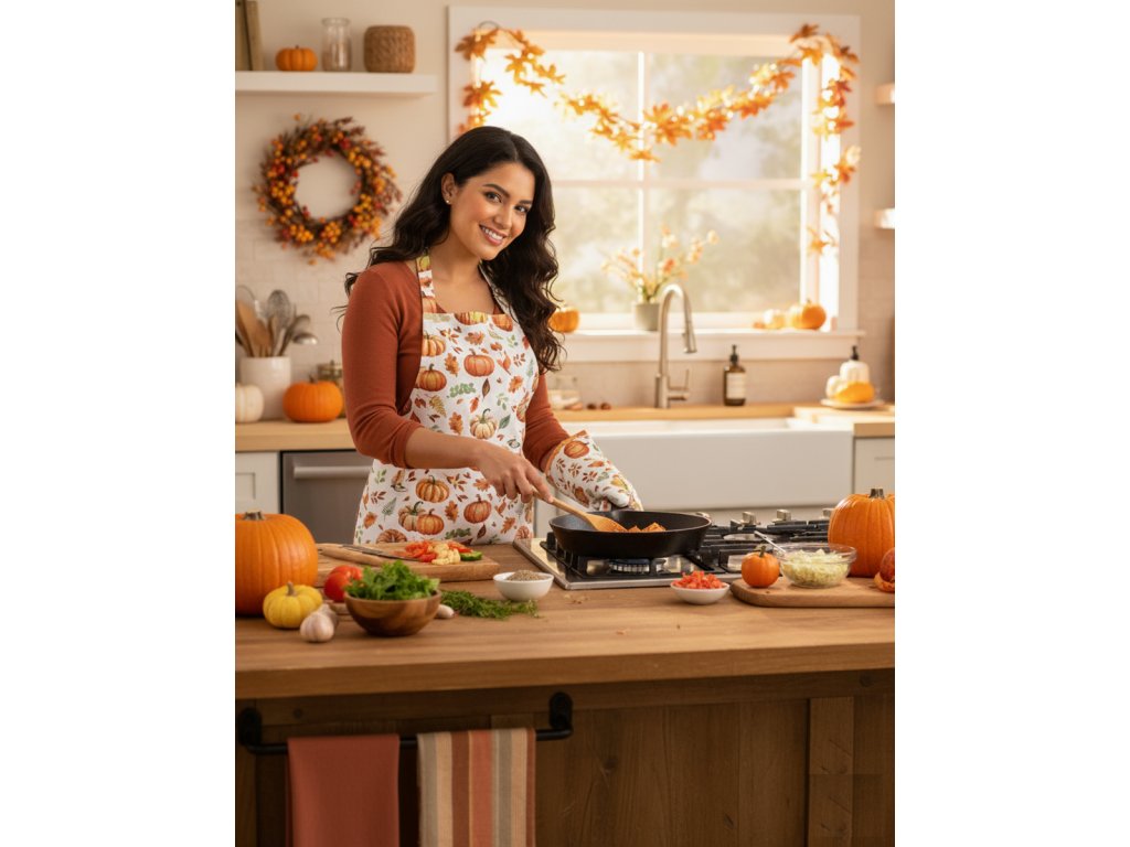 Praktická zástera s vreckom a efektným kombinovaním farieb.